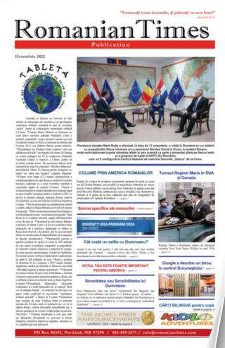 Revista Arhiva Romanian Times 202620252024202320222021202020192018201720162015201420132012201120102009 nr. 396 decembrie 2022 nr. 395 noiembrie 2022 nr. 394 octombrie 2022 nr. 393 septembrie 2022 nr. 392 August 2022 nr. 391 iulie 2022 nr. 390 iunie 2022 nr. 389 mai 2022 nr. 388 aprilie 2022 nr. 387 martie 2022 nr. 386 ianuarie 2022