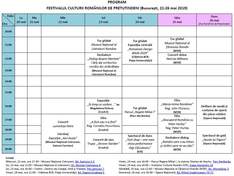 Cu prilejul Zilei Românilor de Pretutindeni (26 mai 2019), are loc cea de-a doua ediţie a “Festivalului Culturii Românilor de Pretutindeni”, organizat la Bucureşti în perioada 22-26 mai a.c.