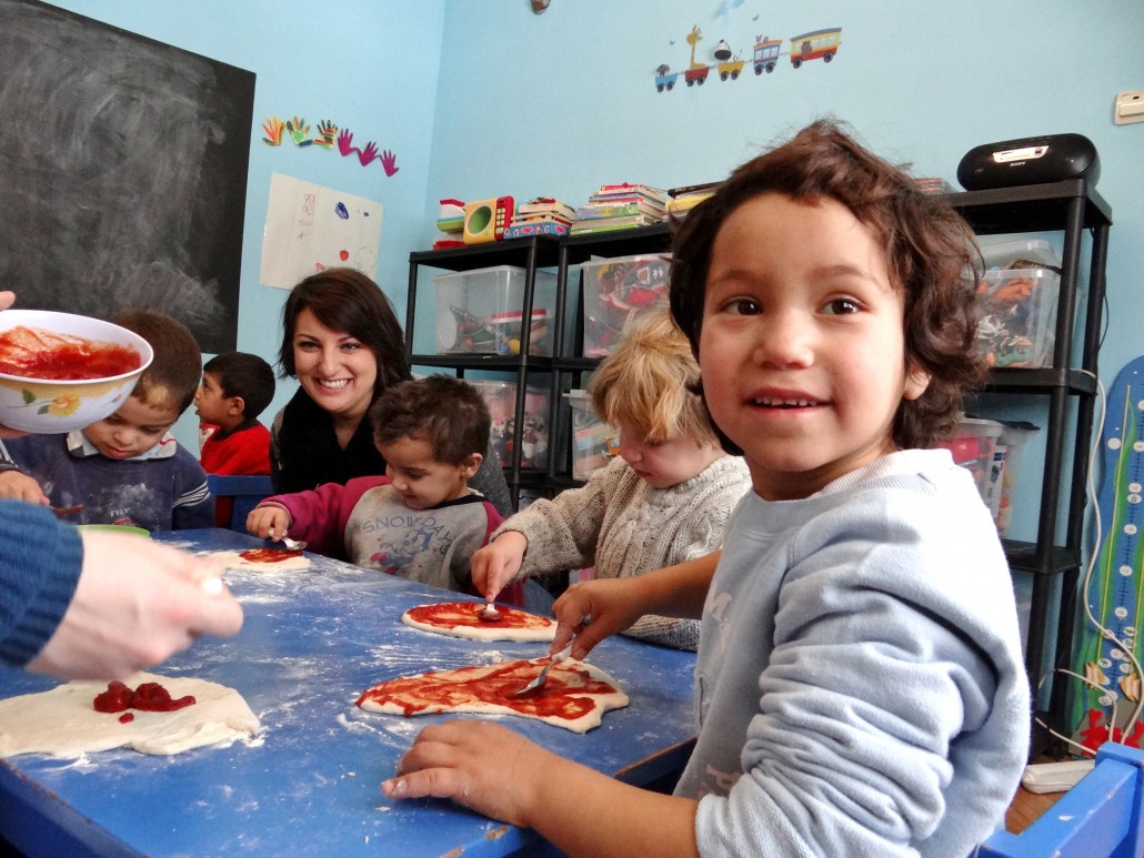 Last week Firm Foundations Romania embarked on a new experiment for our Roma preschool aged Kids Club children. Making homemade pizza! These Roma kids had heard of the word pizza; however, they had no actual concept of dough covered with tomato sauce and cheese baked in the oven. This is most likely because the Roma people do not have ovens rather “sobas” which are filled with fire wood to create a stove top to cook soups and fry potatoes.