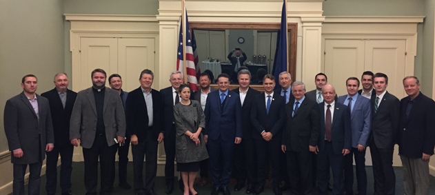 (de la stânga la dreapta) Călin Buzaș - Pastor Bis Baptistă Vancouver; Nelu Ciorba - RomanianTimes; Daniel Ciobanu - Pastor Bis. Adventistă Portland, Membru în board-ul Centrului Cultural Român; Gabriel Agoston - Preot Bis. Ortodoxă Sfânta Maria, Portland; George Horga - Vicepreședinte al Romanian American Society; Bogdan Nichitean - Preot Bis. Ortodoxă Pogorârea Duhului Sfânt, Oregon City; Vasile Muntean - Preot, Director Cultural al Centrului Cultural Român; Teodor Magda - Pastor Bis. Betezda; Avram Berghiano - Pastor Bis. Agape; Marius Marin - Președinte al Centrului Cultural Român; Benedict (Beni) Simon - Vicepreședinte al Centrului Cultural Român; Vasile Cînpean - Pastor Bis. Filadelfia.
